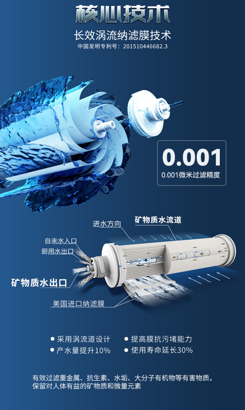 泉來擁有近600項國家專利,產品迭代升級快,新品引領行業(yè)趨勢,從廚放凈水到全屋凈水,再到商用直飲水機,開啟全場景凈水定制解決方案,一站式解決企事業(yè)單位、家庭凈化用水需求。