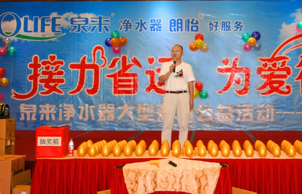 “泉來”作為中國凈水器行業十大品牌之一,19年專注凈水,擁有國際領先的超濾膜技術和反滲透凈水器研發能力,其技術實力、生產規模、產品品質長期處于行業領先地位。在做好產品的同時,泉來始終堅持秉承“改善水質、服務社會”的企業使命,將公益活動與泉來產品有機結合,曾先后為雅安地震災區、汶川地震災區捐贈上百萬元凈水設備用于災后救援飲水支持,連續5年為揚州國際馬拉松賽事現場建立直飲水點。多年來泉來一直積極于公益事業活動。類似此次的愛心公益活動泉來集團也將持續在全國各地召開,為提高國人的飲水品質貢獻自己的力量。