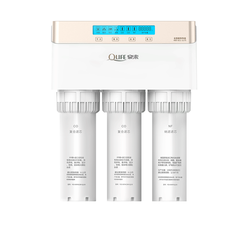 美國進口納濾膜,五級過濾,水質放心;雙出水設計及,雙重水質享受